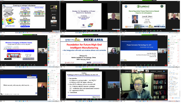 本次會議原定於2020年5月底在南京國際青年會議中心舉辦,受COVID-19疫情影響推遲至11月29日-12月2日舉辦,組委會綜合考慮會議規模、國內外學者參會等因素,最終采取線上虛擬會議形式進行。盡管受到疫情影響取消了麵對麵的線下會議,但國內外學術界和工業界參會熱情絲毫不減。本次會議共收到來自41個國家和地區的論文投稿1172篇(其中國內753篇,國外419篇),最終錄用論文604篇。本次會議設置18場熱點問題及新興技術專題講座,11場特邀專家大會報告,96場口頭報告、16場海報交流,以及2場工業論壇。會議得到了致茂電子、英飛淩、艾德克斯電子、傑瑞電子、江海電容、富士、三菱、台達電子、Mathworks等企業的讚助支持。借助數字化虛擬開發技術,組委會在會議網站提供了三維虛擬工業展覽專場,參展廠家包括9家會議合作夥伴與7家工業展商,工業虛擬展廳為參會技術人員和工業界提供良好的互動交流平台。